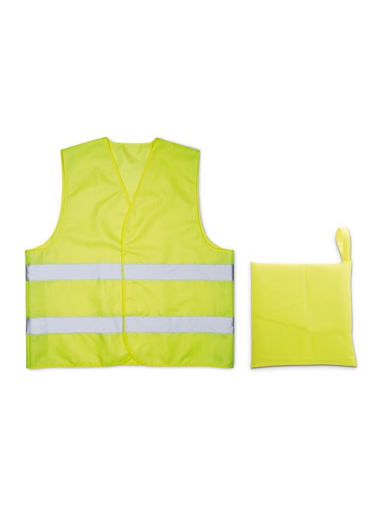 Kamizelka bezpieczeństwa. Wykonana z dzianiny 100% poliester. Odblaskowe pasy 2 klasy widoczności. EN ISO 20471.