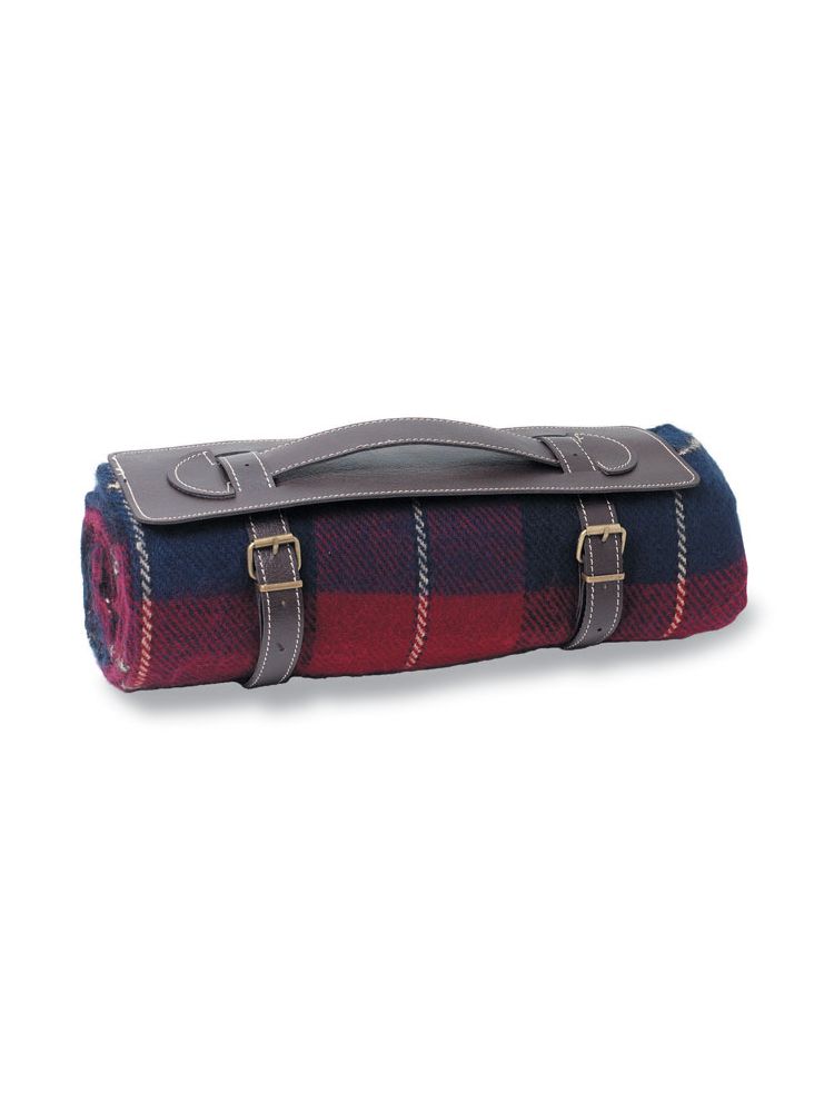 Koc podróżny z paskiem z PVC. Materiał: 100% akryl.