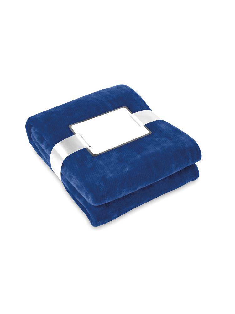 Koc 280g/m² z miłego, miękkiego polaru, przewiązany wstążką, posiada bilecik do nadruku.