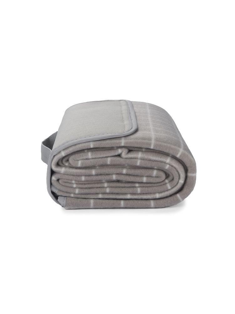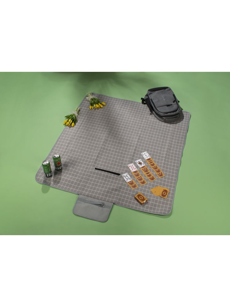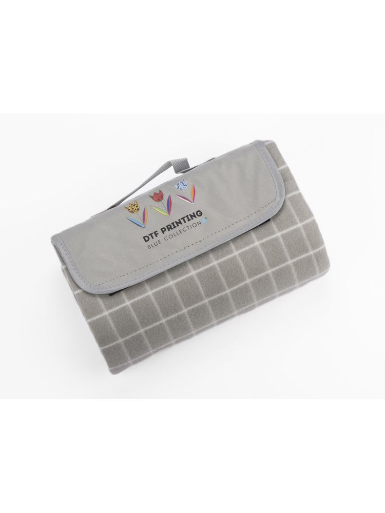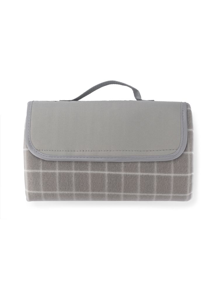 Koc piknikowy wykonany z gładkiego polaru w klasyczny wzór w kratę. Od spodu posiada wodoodporną warstwę PET. Po złożeniu klapa zapinana na rzep.