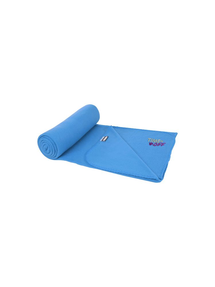 Koc polarowy z plastiku z recyklingu nadaje się do użytku w domu i na zewnątrz. W komplecie z torbą z plastiku 190T z recyklingu z zamknięciem na sznurek. Pakowane w torebkę z polietylenu pochodzącego z recyklingu. Wymiary torby: długość 34 cm, średnica 13 cm.