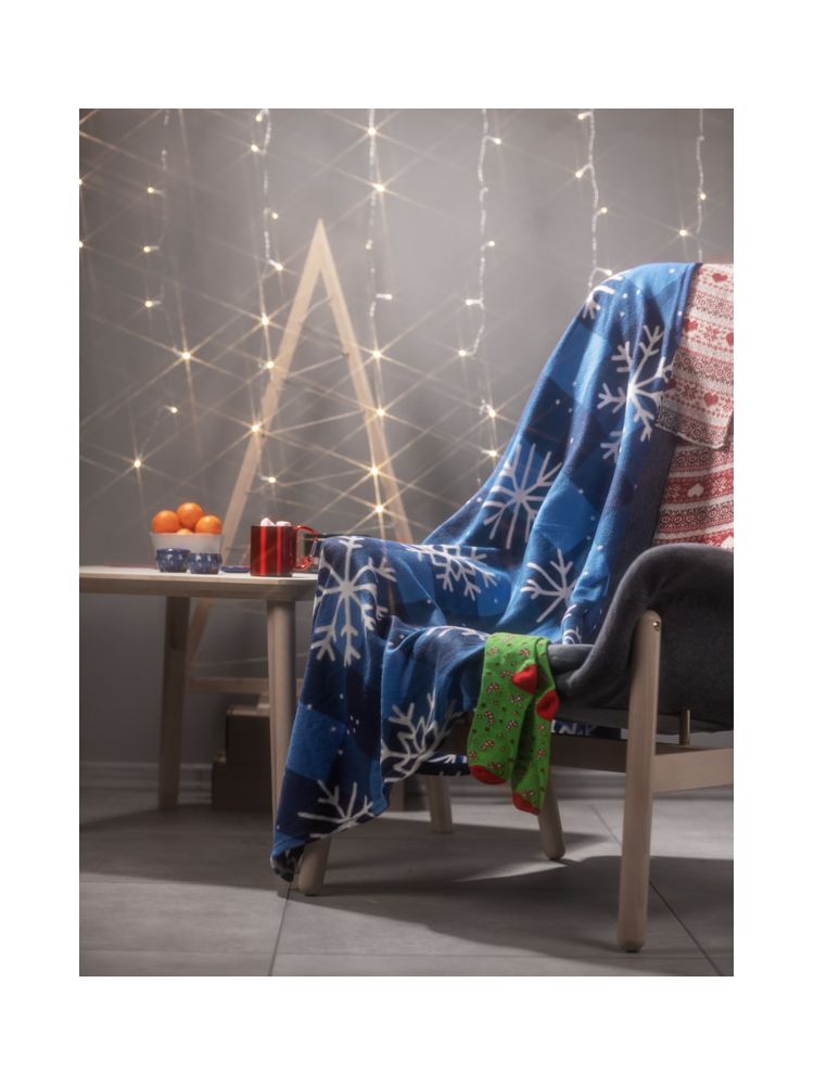 Niebieski koc ze śnieżnym motywem to doskonały towarzysz chłodnych wieczorów. Miękka tkanina zapewni ciepło, a wyjątkowy wzór przenosi do wprost do magicznej, zimowej krainy.