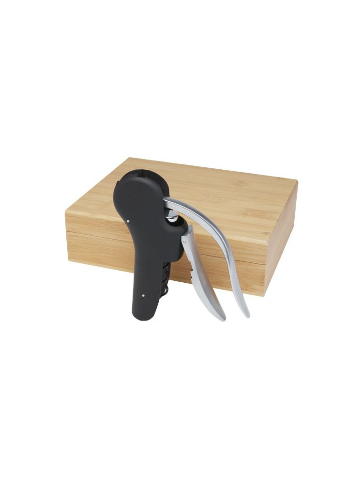 Dzięki temu eleganckiemu korkociągowi do wina możesz otworzyć każdą butelkę wina w zaledwie 3 sekundy szybkim ruchem góra-dół. Bardzo długi uchwyt ze stali nierdzewnej zapewnia komfort użytkowania. W zestawie znajduje się wytrzymały obcinak do folii ze stopu cynku, służący do usuwania foliowych kapsli przed odkorkowaniem. Krótko mówiąc: doskonały prezent dla domowego szefa kuchni lub miłośnika wina! Wykonany z trwałej stali nierdzewnej i zapakowany w naturalne, trwałe bambusowe pudełko, które jest idealne na prezent. Użyty bambus jest pozyskiwany i produkowany zgodnie z normami zrównoważonego rozwoju.