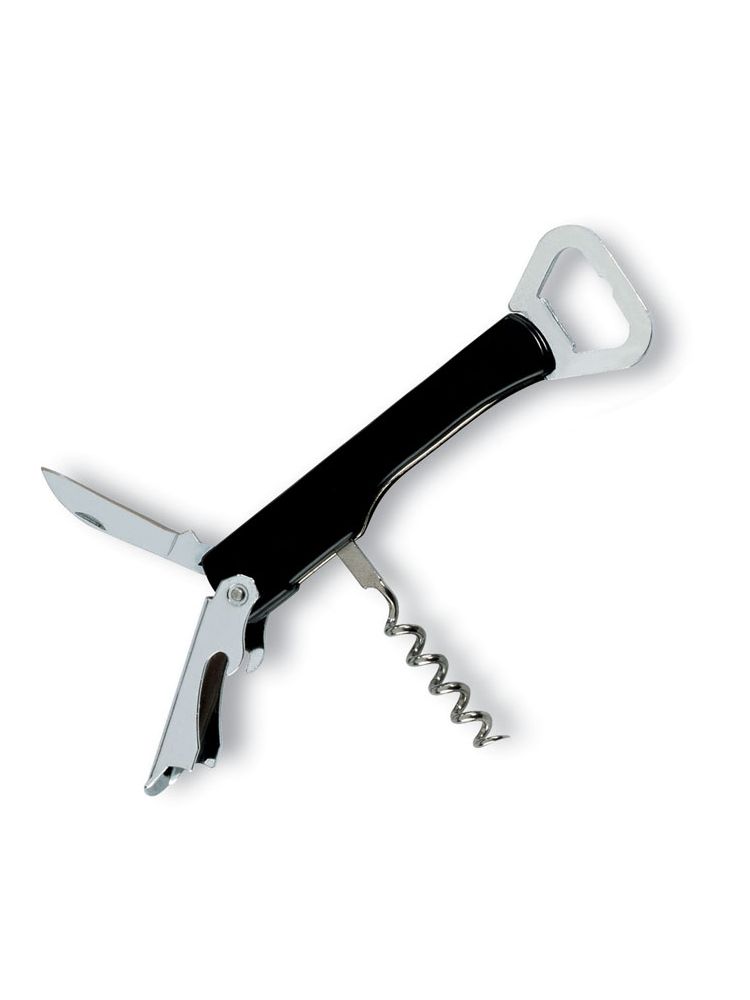 Korkociąg kelnerski z nożem. Materiał: stal nierdzewna, plastikowy trzonek.