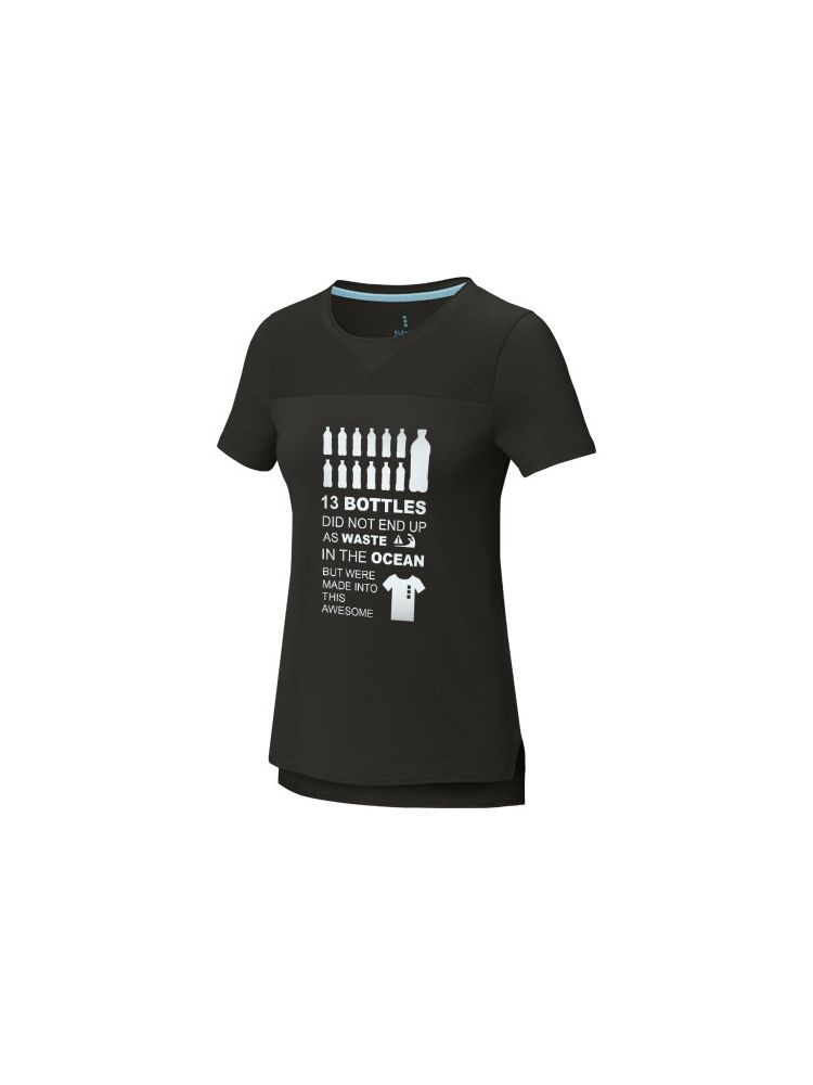 Damska koszulka z krótkim rękawem Borax cool fit to idealne połączenie stylu, zrównoważonego rozwoju i sportowej wydajności. Wykonana w 90% z materiałów pochodzących z recyklingu, posiadających certyfikat GRS, z domieszką elastanu, który zapewnia rozciągliwość i wygodę, o gramaturze 160 g/m2. Wykończenie cool-fit pomaga zachować chłód i suchość. Certyfikat GRS zapewnia w 100% certyfikowany łańcuch dostaw, od surowców po nasze techniki druku, dzięki czemu ta odzież jest ekologiczna.