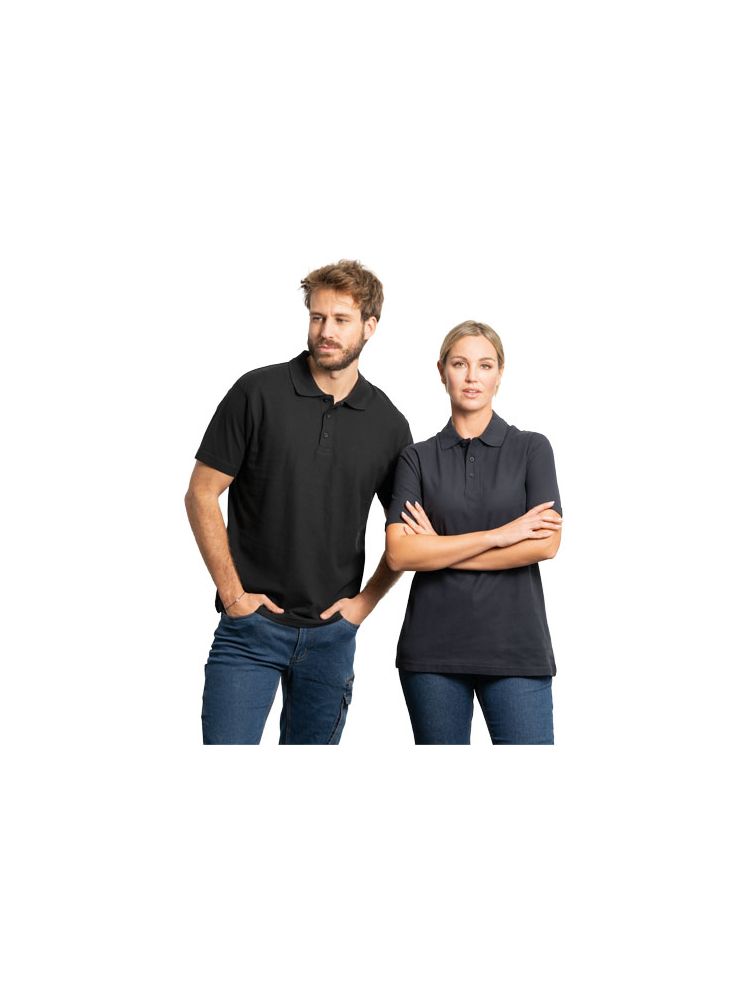 Koszulka polo z krótkim rękawem. Zapięcie na trzy guziki. Prążkowany kołnierz. Wzmocnione kryte szwy na karku i ramionach. Usuwalna metka.