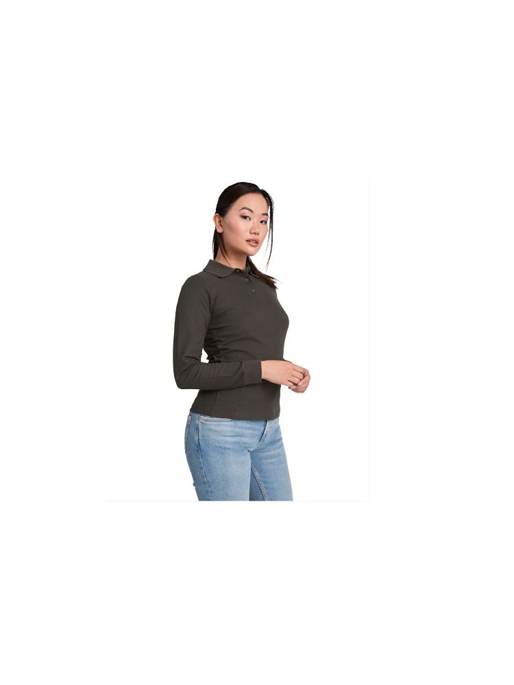 Koszulka polo z długim rękawem, prążkowanym kołnierzykiem i mankietami, zapięciem na 3 guziki i prążkowanymi mankietami 1×1 z elastanu. Wzmocnione kryte szwy w kołnierzyku. Dopasowany krój. Usuwalna metka.
