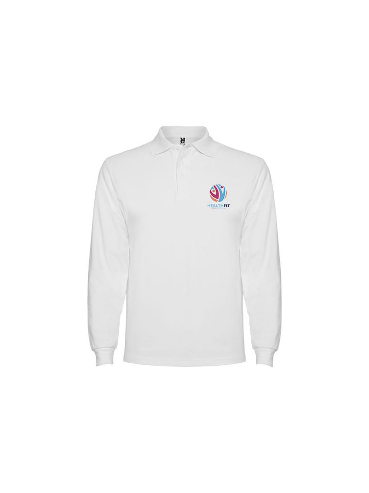 Koszulka polo z długim rękawem, prążkowanym kołnierzykiem i mankietami, zapięciem na 3 guziki i prążkowanymi mankietami 1×1 z elastanu. Wzmocnione kryte szwy w kołnierzyku. Opcjonalna kieszeń. Usuwalna metka.