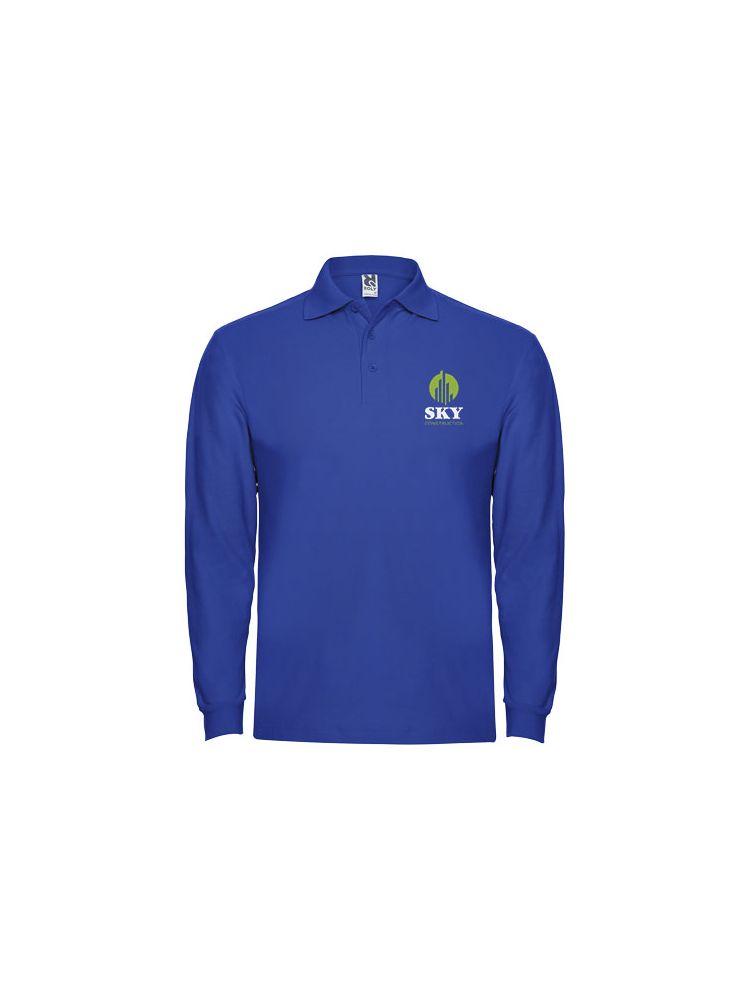 Koszulka polo z długim rękawem, prążkowanym kołnierzykiem i mankietami, zapięciem na 3 guziki i prążkowanymi mankietami 1×1 z elastanu. Wzmocnione kryte szwy w kołnierzyku. Opcjonalna kieszeń. Usuwalna metka.