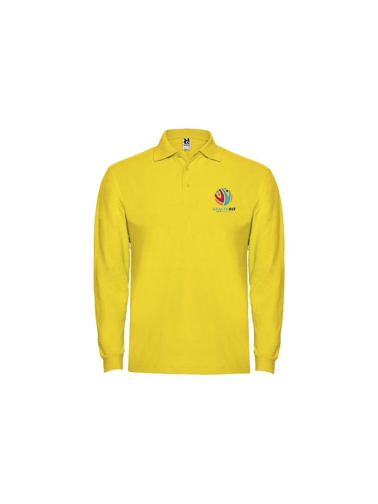 Koszulka polo z długim rękawem, prążkowanym kołnierzykiem i mankietami, zapięciem na 3 guziki i prążkowanymi mankietami 1×1 z elastanu. Wzmocnione kryte szwy w kołnierzyku. Opcjonalna kieszeń. Usuwalna metka.