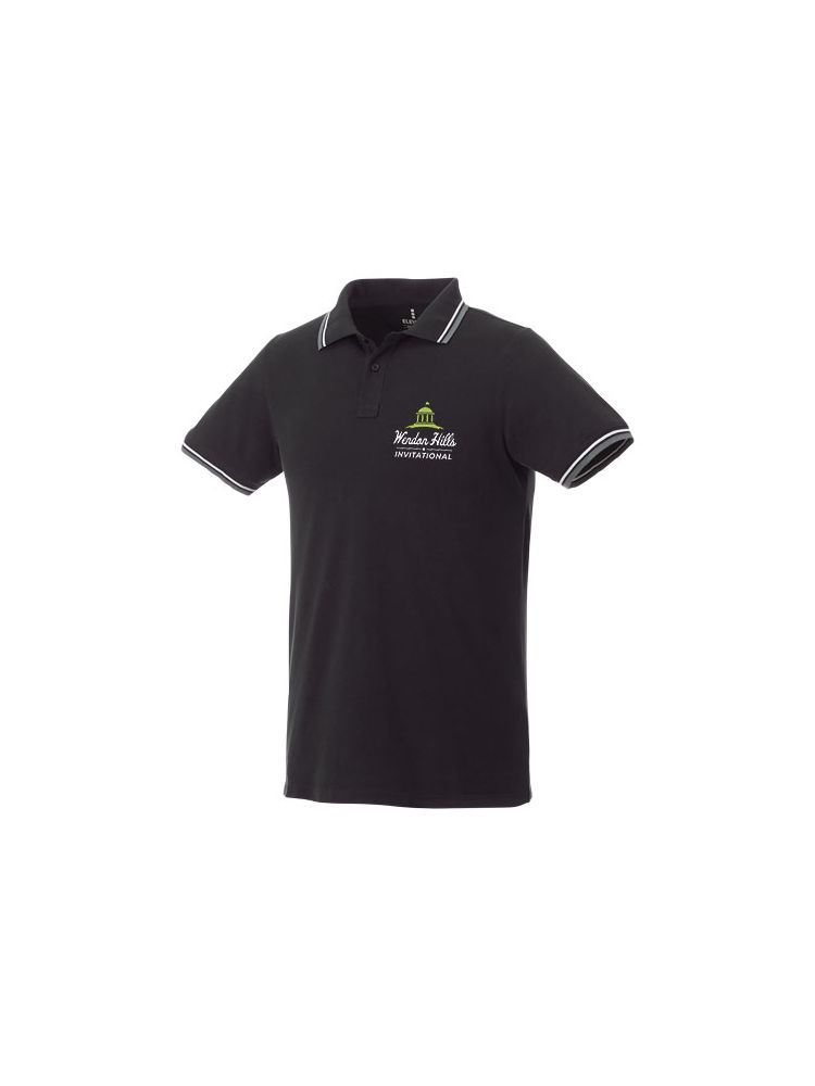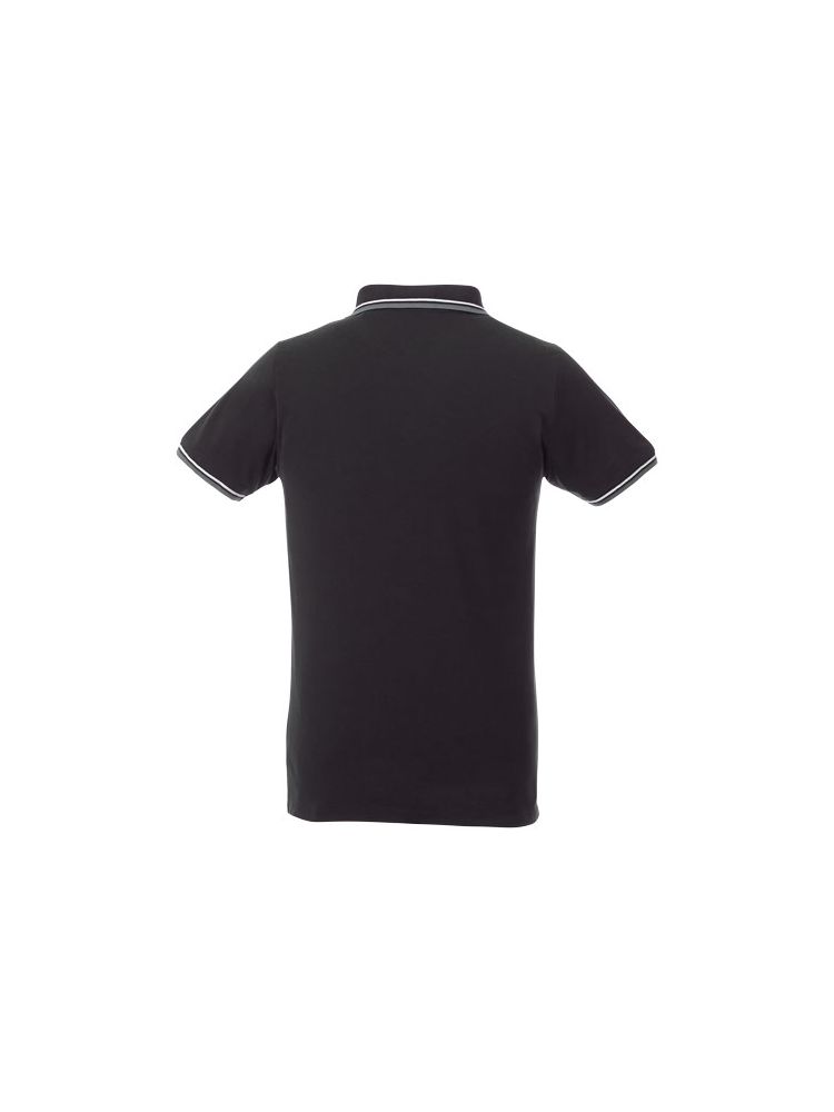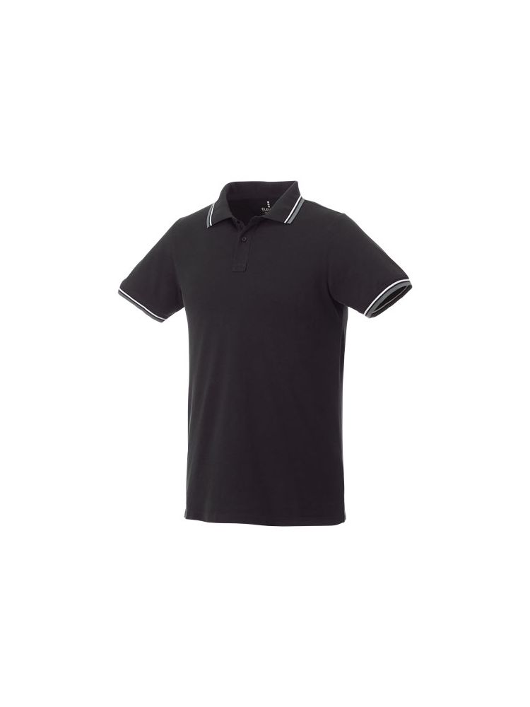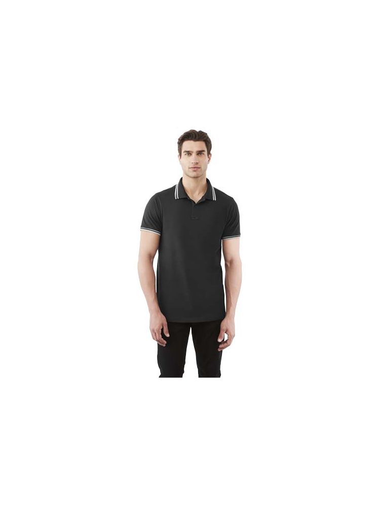 Kołnierzyk z płaskiego splotu. Mankiety z płaskiej dzianiny ściągaczowej . Lamówka w kontrastowym kolorze przy kołnierzyku oraz rękawkach. Plisa z dwoma guzikami. Guziki z wygrawerowanym logo w kolorze materiału. Metka wdrukowana transferem dla lepszego komfortu.