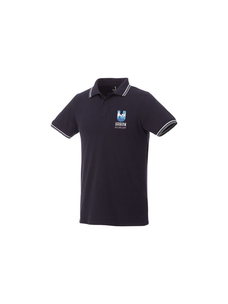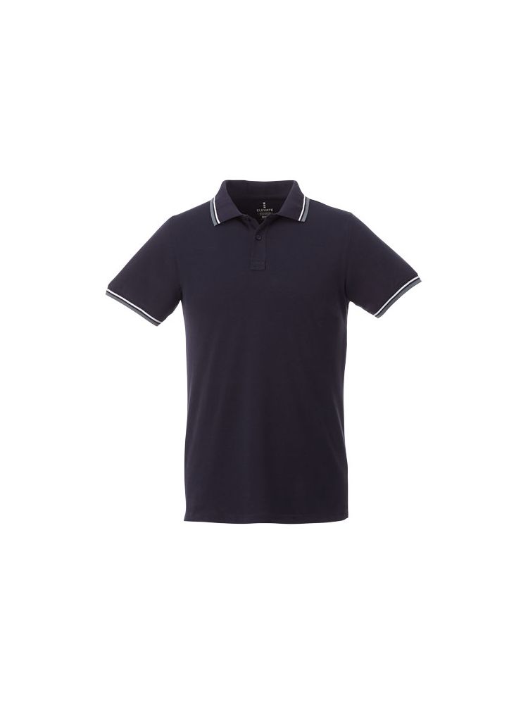 Kołnierzyk z płaskiego splotu. Mankiety z płaskiej dzianiny ściągaczowej . Lamówka w kontrastowym kolorze przy kołnierzyku oraz rękawkach. Plisa z dwoma guzikami. Guziki z wygrawerowanym logo w kolorze materiału. Metka wdrukowana transferem dla lepszego komfortu.