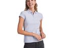 Damska koszulka polo z krótkim rękawem. Wzmocnione kryte szwy w wewnętrznym kołnierzyku. Prążkowany kołnierzyk i mankiety 1×1. Boczne szwy i dopasowany krój. Wąskie zapięcie na 3 guziki. Rozcięcia po bokach. Usuwalna metka.