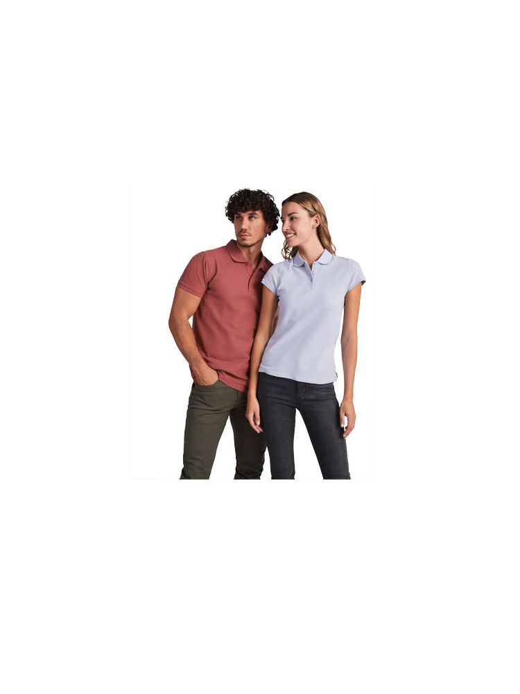 Damska koszulka polo z krótkim rękawem. Wzmocnione kryte szwy w wewnętrznym kołnierzyku. Prążkowany kołnierzyk i mankiety 1×1. Boczne szwy i dopasowany krój. Wąskie zapięcie na 3 guziki. Rozcięcia po bokach. Usuwalna metka.