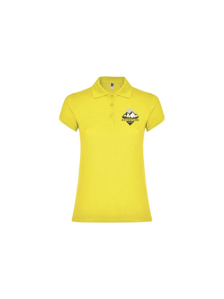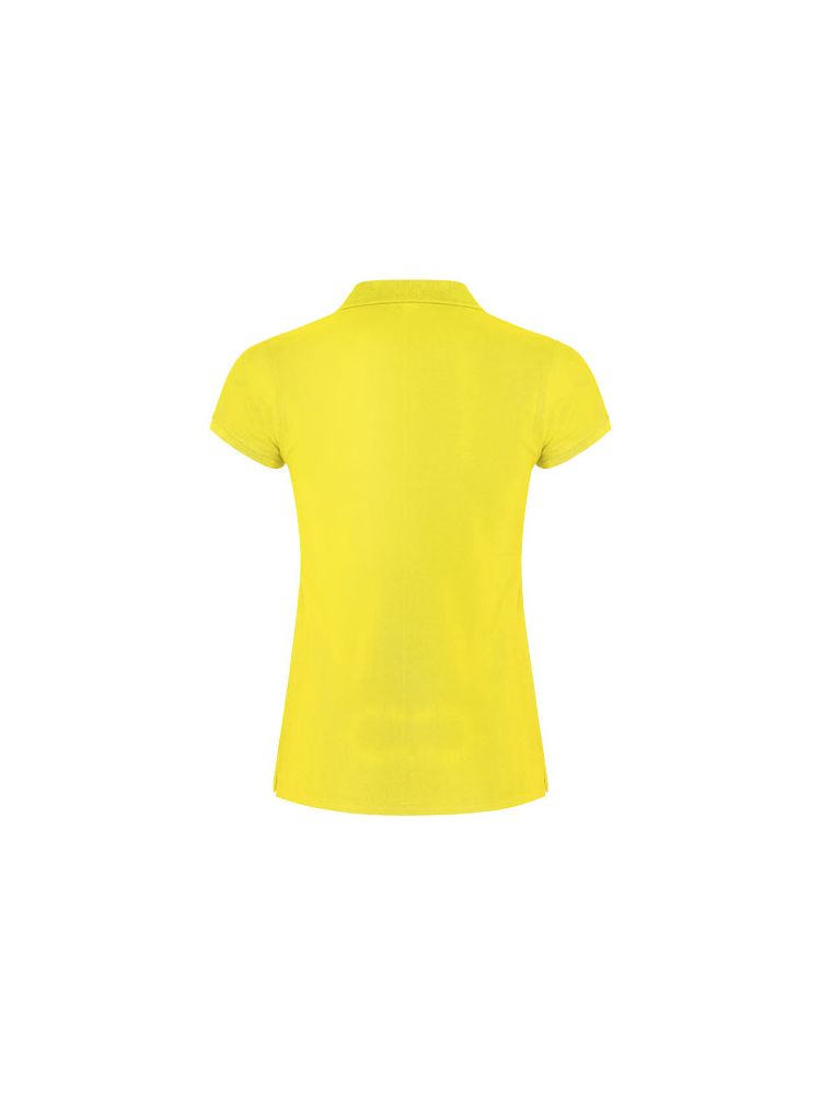 Damska koszulka polo z krótkim rękawem. Wzmocnione kryte szwy w wewnętrznym kołnierzyku. Prążkowany kołnierzyk i mankiety 1×1. Boczne szwy i dopasowany krój. Wąskie zapięcie na 3 guziki. Rozcięcia po bokach. Usuwalna metka.