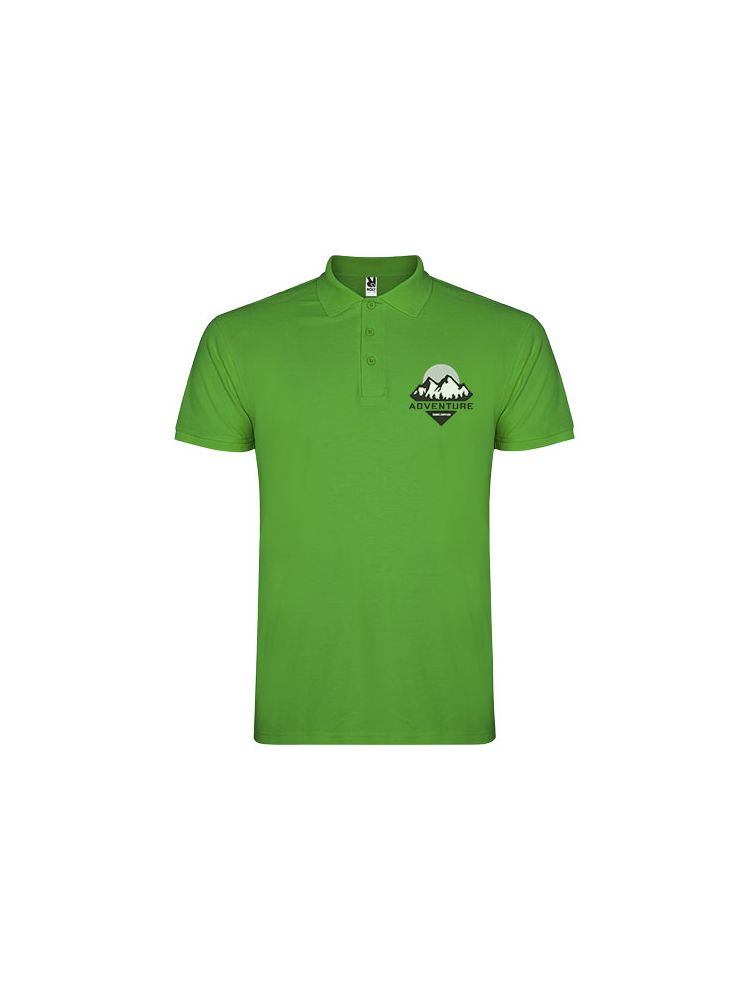 Męska koszulka polo z krótkim rękawem. Wzmocnione kryte szwy w wewnętrznym kołnierzyku. Prążkowane mankiety i kołnierzyk 1×1. Szwy boczne. Zapięcie na 3 guziki i boczne rozcięcia. Opcjonalna kieszeń. Usuwalna metka.