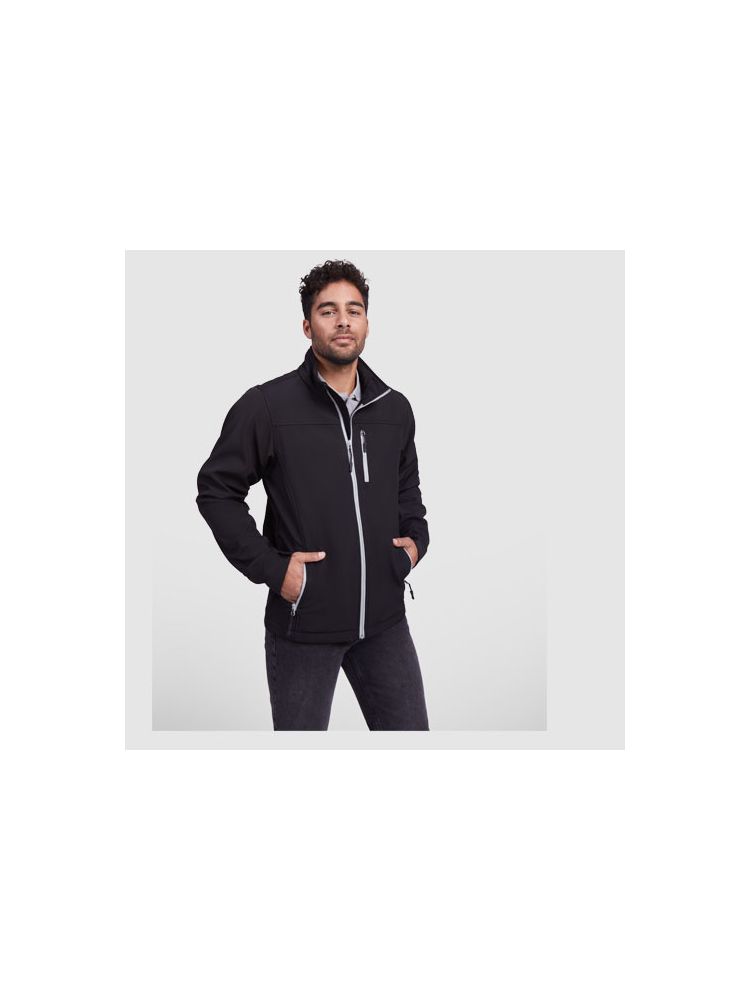 Wiatroszczelna i wodoodporna dwuwarstwowa kurtka typu softshell. Zamek błyskawiczny z przodu, zabezpieczenie suwaka z zapinaniem w kolorze kurtki. Przeszycie na piersi. Trzy kieszenie zewnętrzne zapinane na suwak. Regulacja mankietów na rzepy. Dół ściągany gumką z regulatorami. Wodoodporność 1000 mm. Wiatroszczelna tkanina.