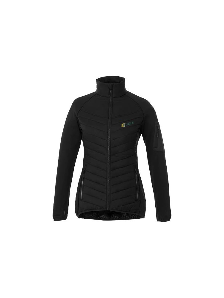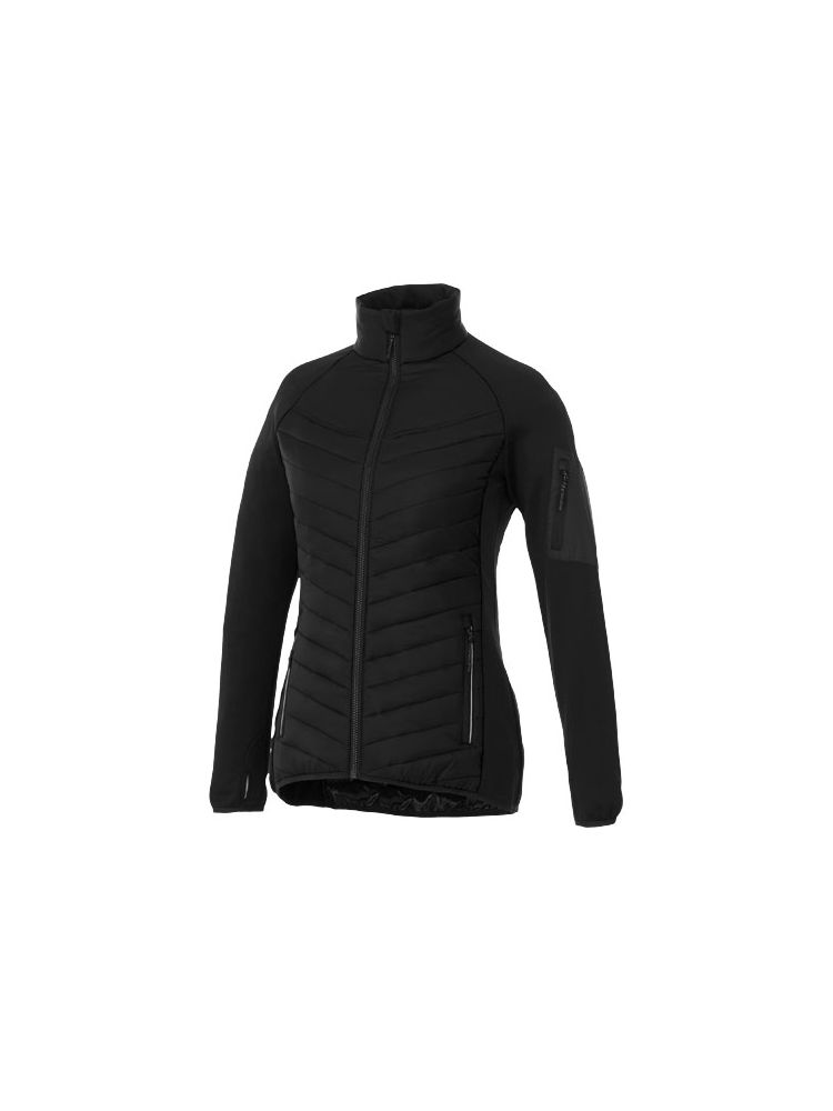 Hybrydowa ocieplana kurtka damska Banff to idealne połączenie stylu i wydajności. Wewnętrzna klapa przeciwwiatrowa sprawia, że wiatr nie przedostaje się przez kurtkę, a obniżony dół z tyłu zapewnia dodatkową osłonę dla dodatkowego ciepła. Elastyczne wiązanie w kontrastowym kolorze dodaje stylowego akcentu, zapewniając jednocześnie bezpieczne dopasowanie. Tkanina 380T o matowym splocie ma hydrofobowe i odporne na puch wykończenie, wykonane z nylonu (38 g/m2). Kontrastowy materiał to dzianina interlock wykonana z poliestru i elastanu (245 g/m2), dodająca elastyczności i komfortu. Poliestrowa izolacja z imitacji puchu zapewnia lekkie ciepło, idealne na chłodne dni. Kurtka ma dopasowany krój zapewniający kobiecy wygląd.
