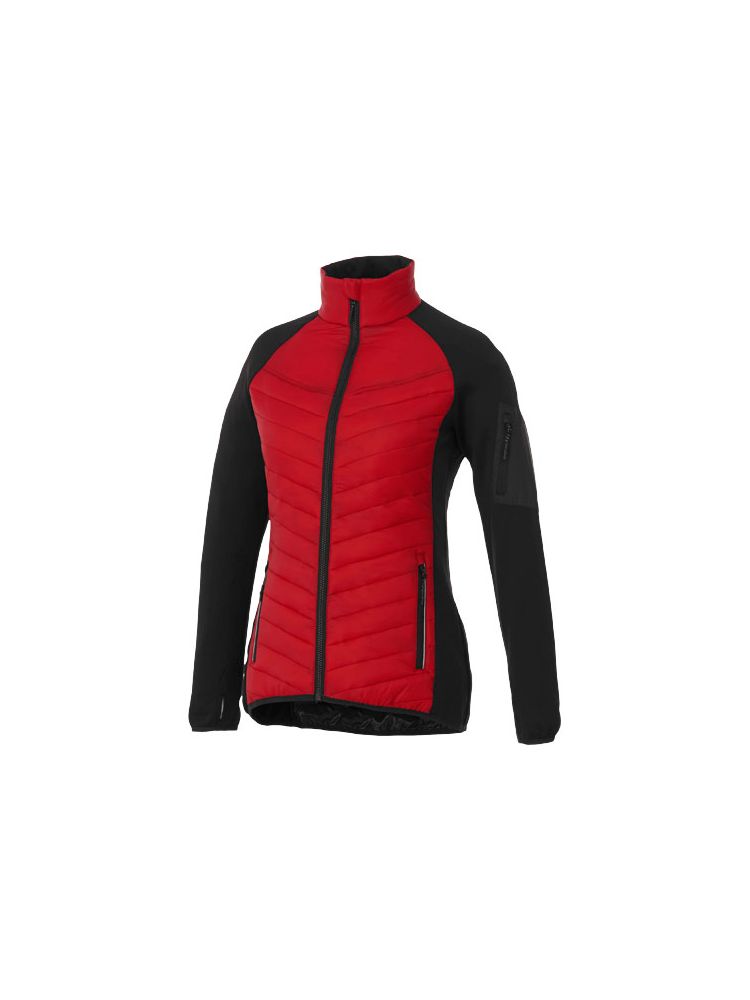 Hybrydowa ocieplana kurtka damska Banff to idealne połączenie stylu i wydajności. Wewnętrzna klapa przeciwwiatrowa sprawia, że wiatr nie przedostaje się przez kurtkę, a obniżony dół z tyłu zapewnia dodatkową osłonę dla dodatkowego ciepła. Elastyczne wiązanie w kontrastowym kolorze dodaje stylowego akcentu, zapewniając jednocześnie bezpieczne dopasowanie. Tkanina 380T o matowym splocie ma hydrofobowe i odporne na puch wykończenie, wykonane z nylonu (38 g/m2). Kontrastowy materiał to dzianina interlock wykonana z poliestru i elastanu (245 g/m2), dodająca elastyczności i komfortu. Poliestrowa izolacja z imitacji puchu zapewnia lekkie ciepło, idealne na chłodne dni. Kurtka ma dopasowany krój zapewniający kobiecy wygląd.