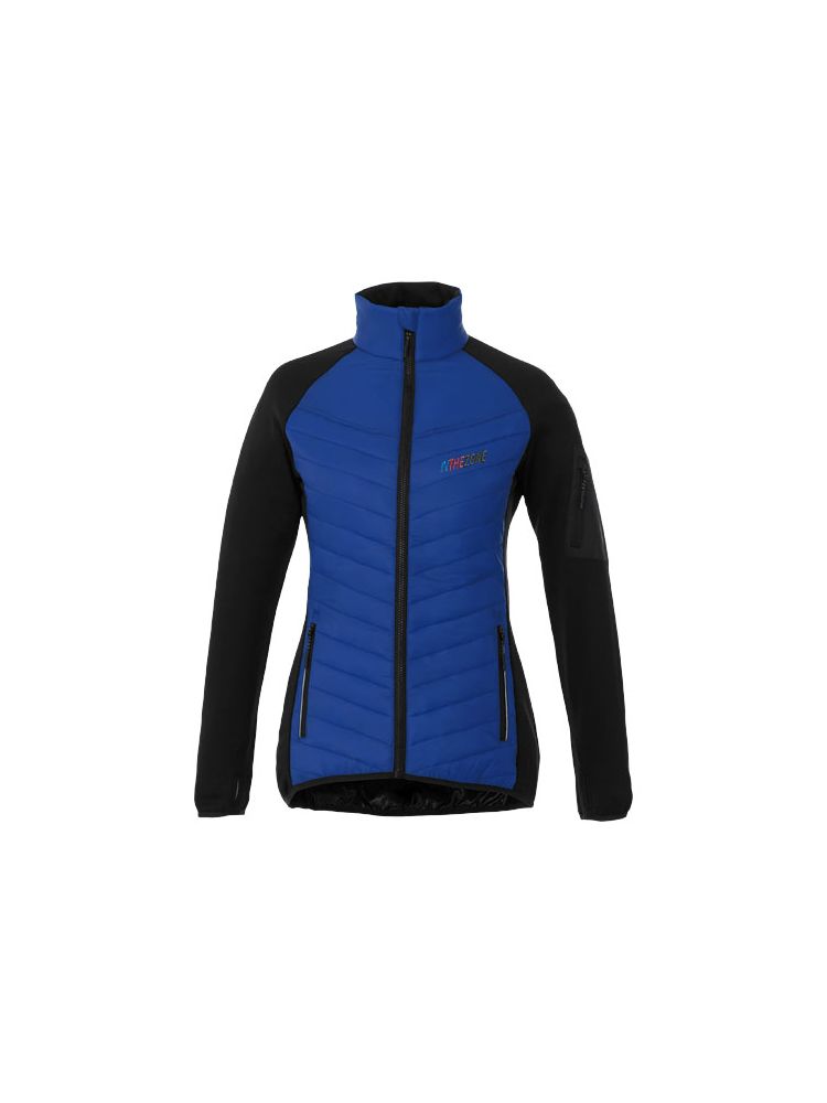 Hybrydowa ocieplana kurtka damska Banff to idealne połączenie stylu i wydajności. Wewnętrzna klapa przeciwwiatrowa sprawia, że wiatr nie przedostaje się przez kurtkę, a obniżony dół z tyłu zapewnia dodatkową osłonę dla dodatkowego ciepła. Elastyczne wiązanie w kontrastowym kolorze dodaje stylowego akcentu, zapewniając jednocześnie bezpieczne dopasowanie. Tkanina 380T o matowym splocie ma hydrofobowe i odporne na puch wykończenie, wykonane z nylonu (38 g/m2). Kontrastowy materiał to dzianina interlock wykonana z poliestru i elastanu (245 g/m2), dodająca elastyczności i komfortu. Poliestrowa izolacja z imitacji puchu zapewnia lekkie ciepło, idealne na chłodne dni. Kurtka ma dopasowany krój zapewniający kobiecy wygląd.