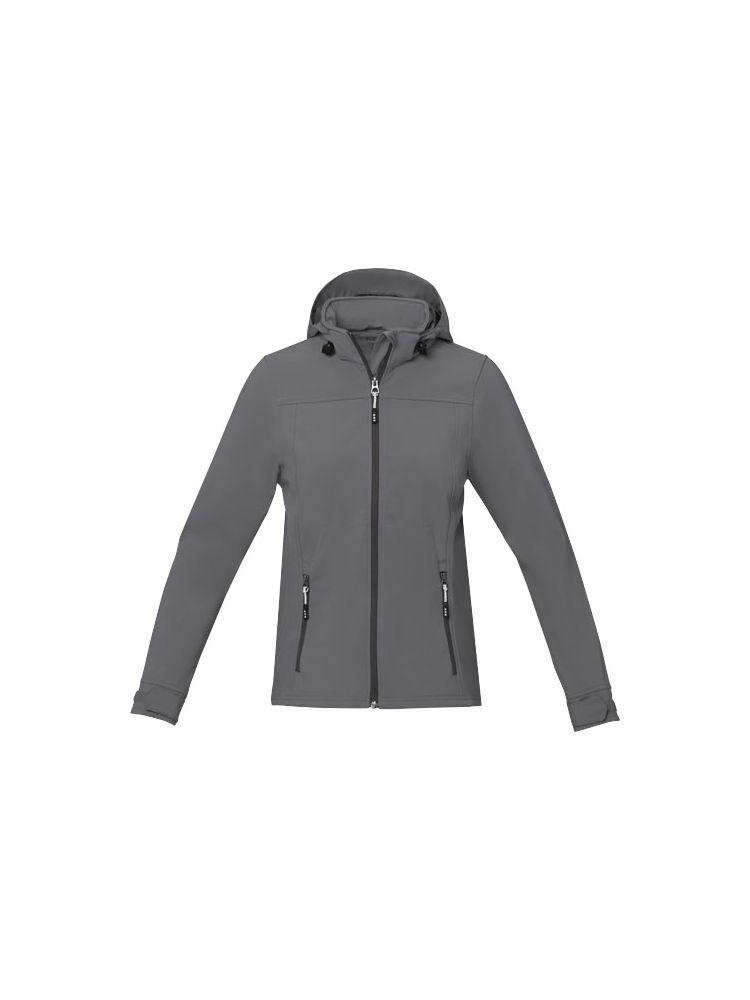 Damska kurtka softshell Langley – dla najwyższej wydajności na świeżym powietrzu. Kurtka ma wodoodporność 5000 mm, dzięki czemu będziesz sucha i chroniona przed żywiołami. Wyjątkowa oddychalność na poziomie 3000 g/m² odprowadza wilgoć, zapewniając Ci komfort podczas intensywnych aktywności. Ciesz się nieograniczonym ruchem dzięki czterokierunkowej elastycznej tkaninie, łączącej poliester i elastan (300 g / m²), zaprojektowanej tak, aby zginać się i dostosowywać do każdego ruchu ciała. Połączona warstwa wewnętrzna zawiera mikropolar wykonany z poliestru, uzupełniony laminacją TPU, która zwiększa izolację i ciepło kurtki oraz chroni ją przed każdą pogodą. Odpinany kaptur dostosowuje się do różnych warunków pogodowych, a regulowane mankiety z zapięciem na rzep gwarantują ścisłe i wygodne dopasowanie. Elastyczny sznurek ściągający z regulowanym zapięciem na sznurek pozwala dopasować kurtkę do dowolnych preferencji. Dzięki bezpiecznym kieszeniom na dłonie z zamkami błyskawicznymi możesz mieć swoje niezbędne rzeczy pod ręką podczas każdej przygody. Bądź gotowy na każdą przygodę w stylu, komforcie i pewności siebie dzięki kurtce softshell Langley. Ta kurtka ma dopasowany krój, który zapewnia kobiecy wygląd.