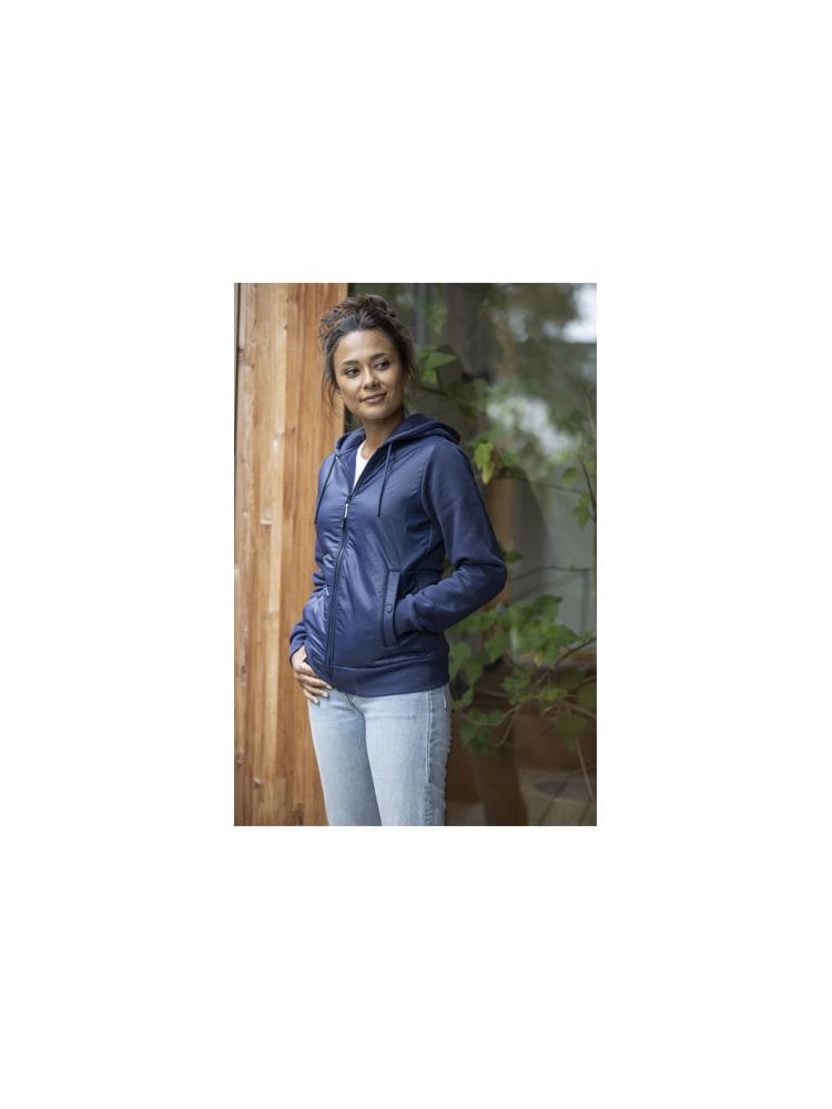 Damska kurtka hybrydowa Darnell to idealne połączenie stylu i funkcjonalności. Częściowo wykonana z tkaniny nylonowej 380T o gramaturze 38 g/m², zapewniającej trwałość i lekkość. Kontrastowy materiał to dzianina z bawełny i poliestru (345 g/m²), zapewniająca wygodę i swobodę ruchów. Wnętrze kurtki jest szczotkowane, zapewniając dodatkowe ciepło i miękkość w dotyku. Kurtka jest wyposażona w wewnętrzną kieszeń, która zapewnia wygodne przechowywanie niezbędnych rzeczy. Elastyczne ściągacze w mankietach i u dołu zapewniają wygodne i bezpieczne dopasowanie, dodając odrobinę wyrafinowania do ogólnego projektu. Hybrydowa kurtka Darnell to idealny wybór do noszenia na co dzień i na swobodne okazje. Kurtka ma dopasowany krój, który nadaje jej kobiecy wygląd.