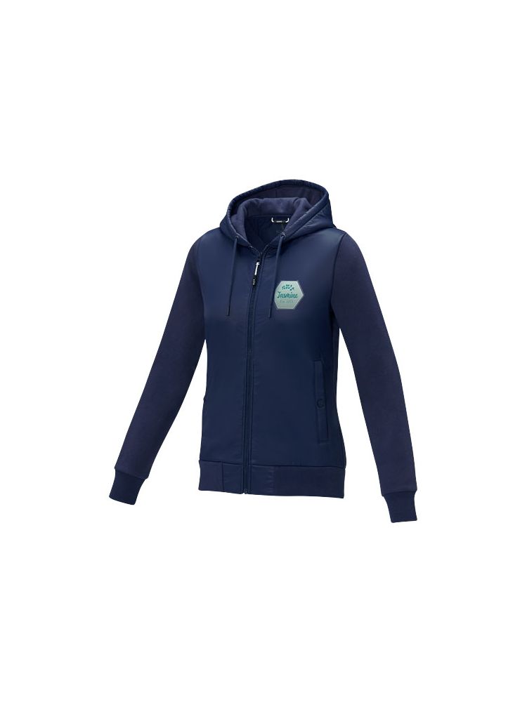 Damska kurtka hybrydowa Darnell to idealne połączenie stylu i funkcjonalności. Częściowo wykonana z tkaniny nylonowej 380T o gramaturze 38 g/m², zapewniającej trwałość i lekkość. Kontrastowy materiał to dzianina z bawełny i poliestru (345 g/m²), zapewniająca wygodę i swobodę ruchów. Wnętrze kurtki jest szczotkowane, zapewniając dodatkowe ciepło i miękkość w dotyku. Kurtka jest wyposażona w wewnętrzną kieszeń, która zapewnia wygodne przechowywanie niezbędnych rzeczy. Elastyczne ściągacze w mankietach i u dołu zapewniają wygodne i bezpieczne dopasowanie, dodając odrobinę wyrafinowania do ogólnego projektu. Hybrydowa kurtka Darnell to idealny wybór do noszenia na co dzień i na swobodne okazje. Kurtka ma dopasowany krój, który nadaje jej kobiecy wygląd.