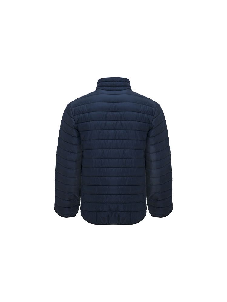 Męska kurtka pikowana z wypełnieniem imitującym w dotyku pierze. Odwrócone zamki błyskawiczne z dopasowanym ochraniaczem podbródka i ściągaczem. Dwie przednie kieszenie z zamkami błyskawicznymi. Dopasowana elastyczna lamówka w kołnierzu, mankietach i u dołu. Kontrastowa podszewka wewnętrzna. W zestawie torba transportowa. Lekka i składana odzież. Usuwalna metka. Wodoodporna. Wiatroszczelna.