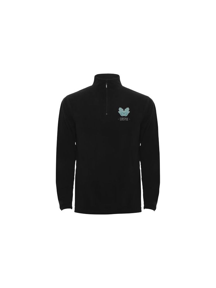 Bluza z mikropolaru z zamkiem do połowy szyi i osłoną podbródka. Mankiety z elastyczną lamówką. Usuwalna metka.