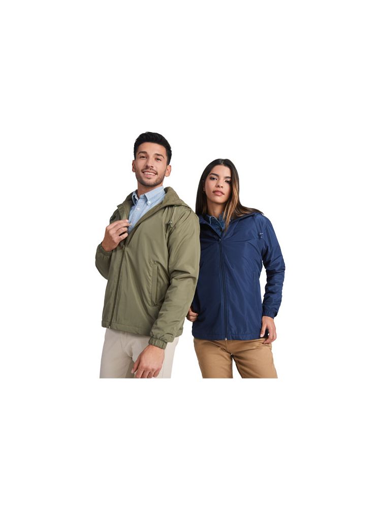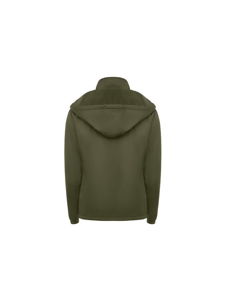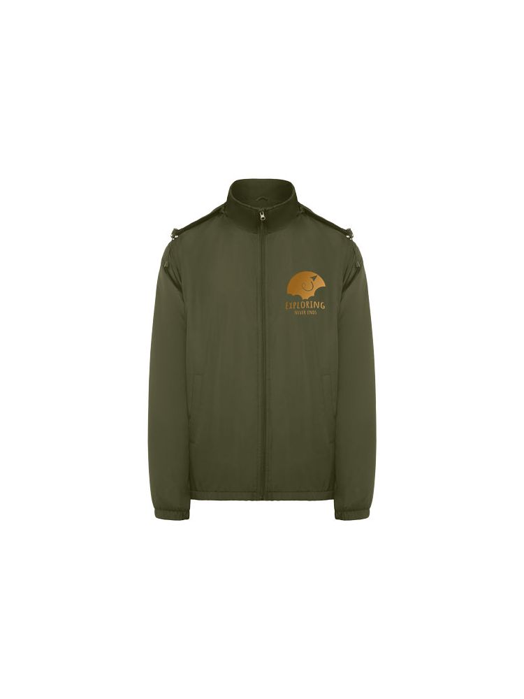 Lekka wodoodporna kurtka. Wysoki kołnierz i zwijany kaptur z regulacją. Podszewka z mikropolaru. Zamek błyskawiczny z przodu i osłona podbródka. Elastyczne mankiety. Dwie kieszenie boczne zapinane na zamek. Wewnętrzna kieszeń na lewej piersi. Usuwalna metka. Wodoodporna. Wiatroszczelna.