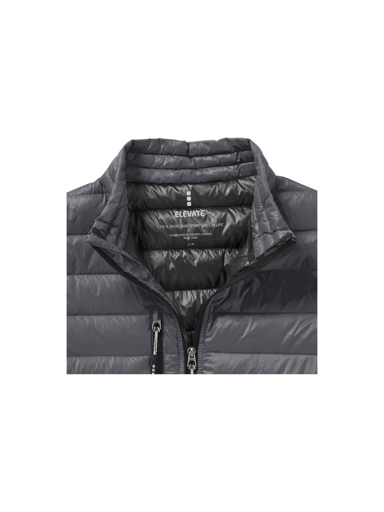 Lekka męska kurtka puchowa Scotia to doskonałe połączenie stylu i wygody. Ta kurtka ma elastyczne wiązania na dole i rękawach, oferując wygodne i lekko obcisłe dopasowanie, które zapewnia dodatkową ochronę przed chłodnym wiatrem. Zewnętrzna powłoka wykonana jest z nylonu dull cire 20D z wodoodpornym wykończeniem, co zapewnia wyjątkową trwałość. Lekki materiał pozwala na łatwe poruszanie się i noszenie bez wysiłku przez cały dzień. Odporna na puch tłoczona tkanina zapobiega wydostawaniu się puchu i pierza, zapewniając długotrwałe ciepło i dodatkowy poziom trwałości. Izolacja puchowa posiada certyfikat RDS (Responsible Down Standard), składa się z puchu i pierza, zapewniając lekkie ciepło bez uszczerbku dla standardów etycznych. Niezawodny towarzysz każdej przygody na świeżym powietrzu.