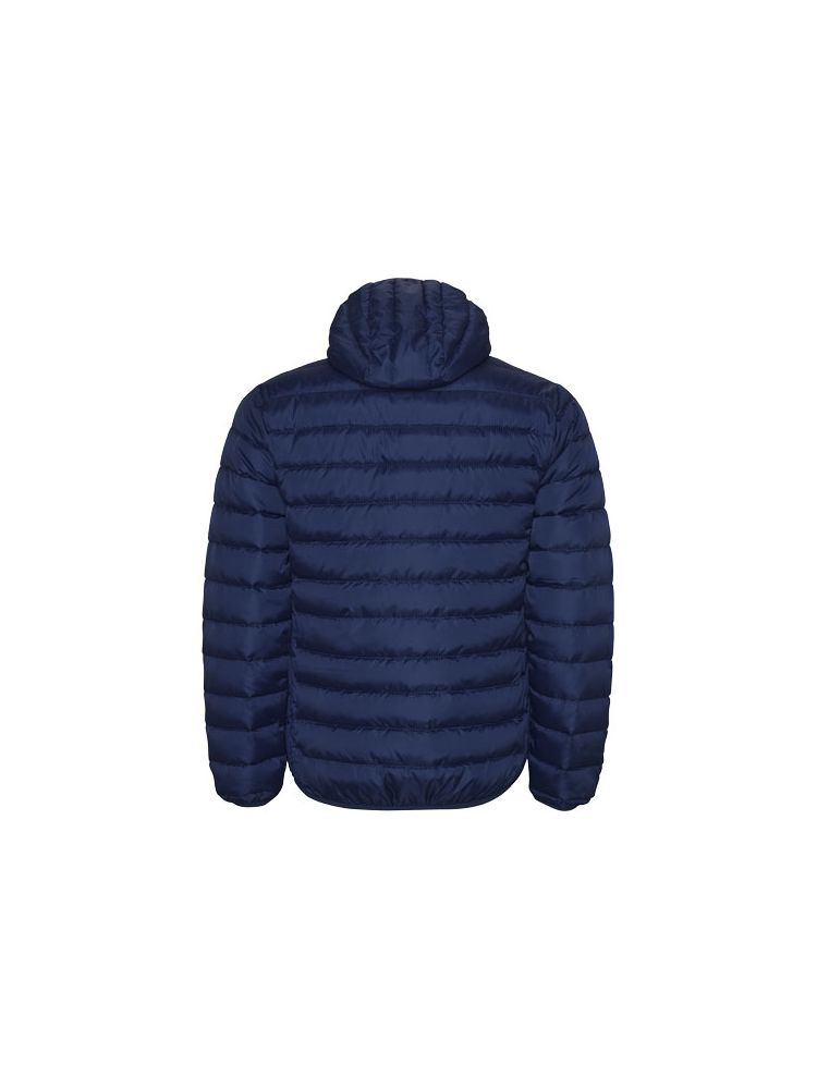 Męska pikowana kurtka z dopasowanym kapturem z materiału przypominającego w dotyku pierze. Odwrócone zamki błyskawiczne z dopasowaną osłoną podbródka. Dwie przednie kieszenie zapinane na zamek. Dopasowane elastyczne wykończenia mankietów, dołu i kaptura. Kontrastowa wewnętrzna podszewka. Dołączona torba transportowa. Lekka i składana odzież. Wodoodporna. Model wiatroszczelny.