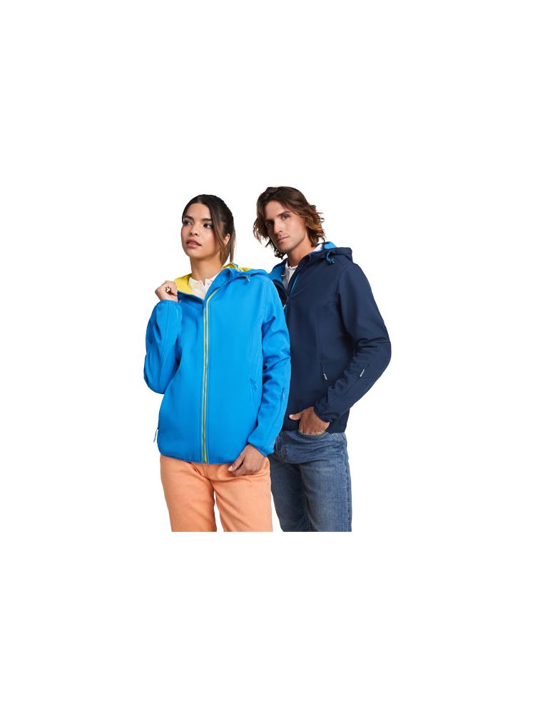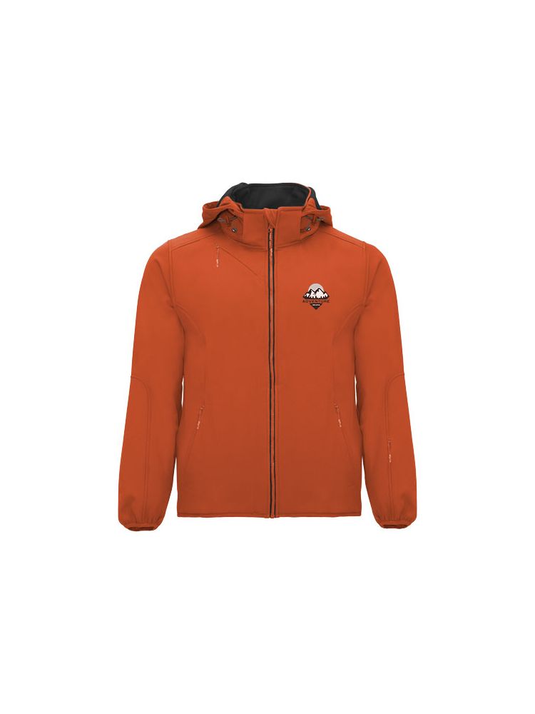 2-warstwowy softshell o sportowym kroju: Kontrastowy centralny zamek błyskawiczny z ochraniaczem podbródka i ściągaczem. Wewnętrzna podszewka z kontrastowego mikropolaru. Zewnętrzna kieszeń na prawej piersi z niewidocznym zamkiem błyskawicznym po przekątnej. Dwie kieszenie boczne z niewidocznym zamkiem błyskawicznym. Kieszeń na lewym rękawie. Dopasowane elastyczne wykończenie mankietów i dołu. Składany kaptur z kontrastową mikropolarową podszewką. Usuwalna metka. Wodoodporna. Wiatroszczelna.