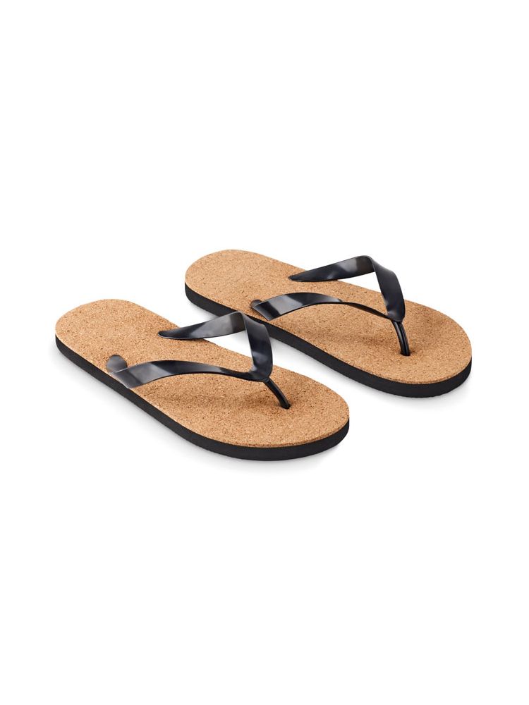 Kapcie plażowe z podeszwą z korka i EVA oraz paskami z PVC. rozmiar M pasuje na 36-39. Korek jest materiałem w 100% naturalnym. Ze względu na jego strukturę i porowatość powierzchni ostateczny wygląd nadruku na każdym artykule może się różnić.