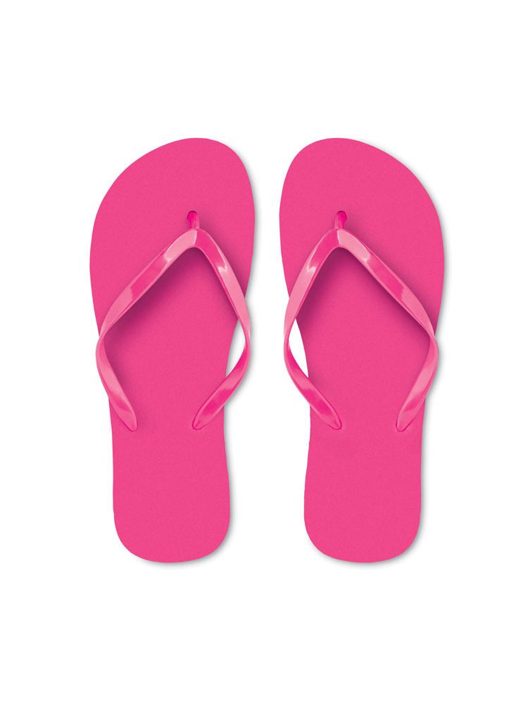 Plażowe japonki z podeszwą z polietylenu i paskiem z PVC. Dostępne w dwóch rozmiarach, M (36-39) i L (40-43).
