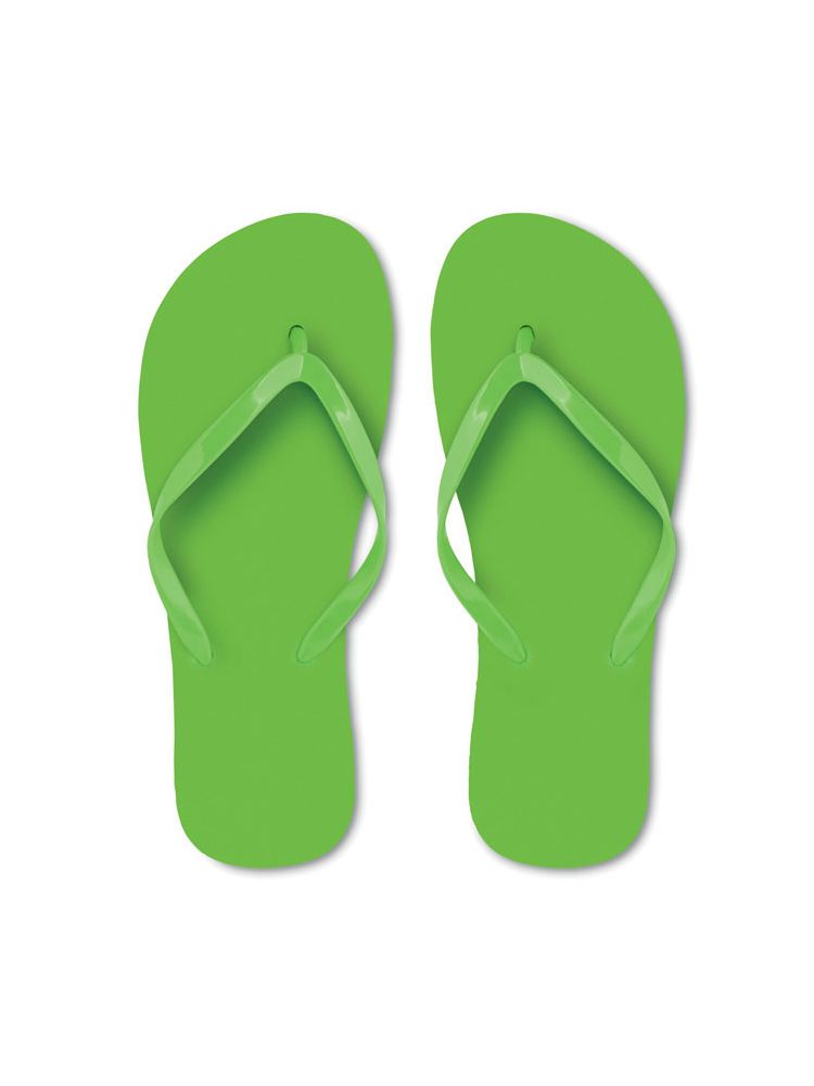 Plażowe japonki z podeszwą z polietylenu i paskiem z PVC. Dostępne w dwóch rozmiarach, M (36-39) i L (40-43).