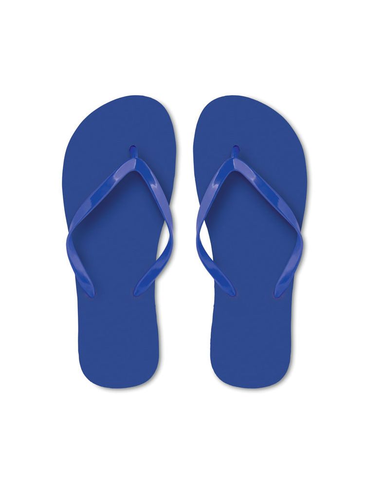 Plażowe japonki z podeszwą z polietylenu i paskiem z PVC. Dostępne w dwóch rozmiarach, M (36-39) i L (40-43).