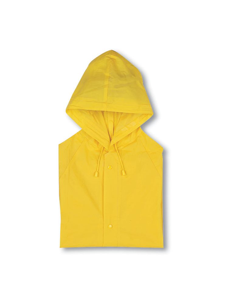 Płaszcz przeciwdeszczowy z kapturem. PVC. Zapinany na zatrzaski.