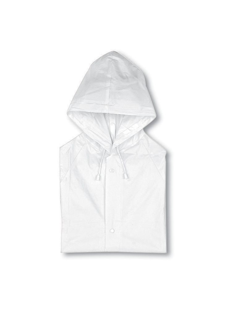 Płaszcz przeciwdeszczowy z kapturem. PVC. Zapinany na zatrzaski.