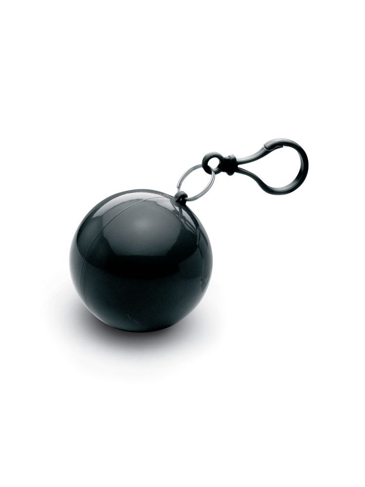 Przezroczyste ponczo przeciwdeszczowe z PE, zapakowane w okrągłe etui z AS z karabinkiem.