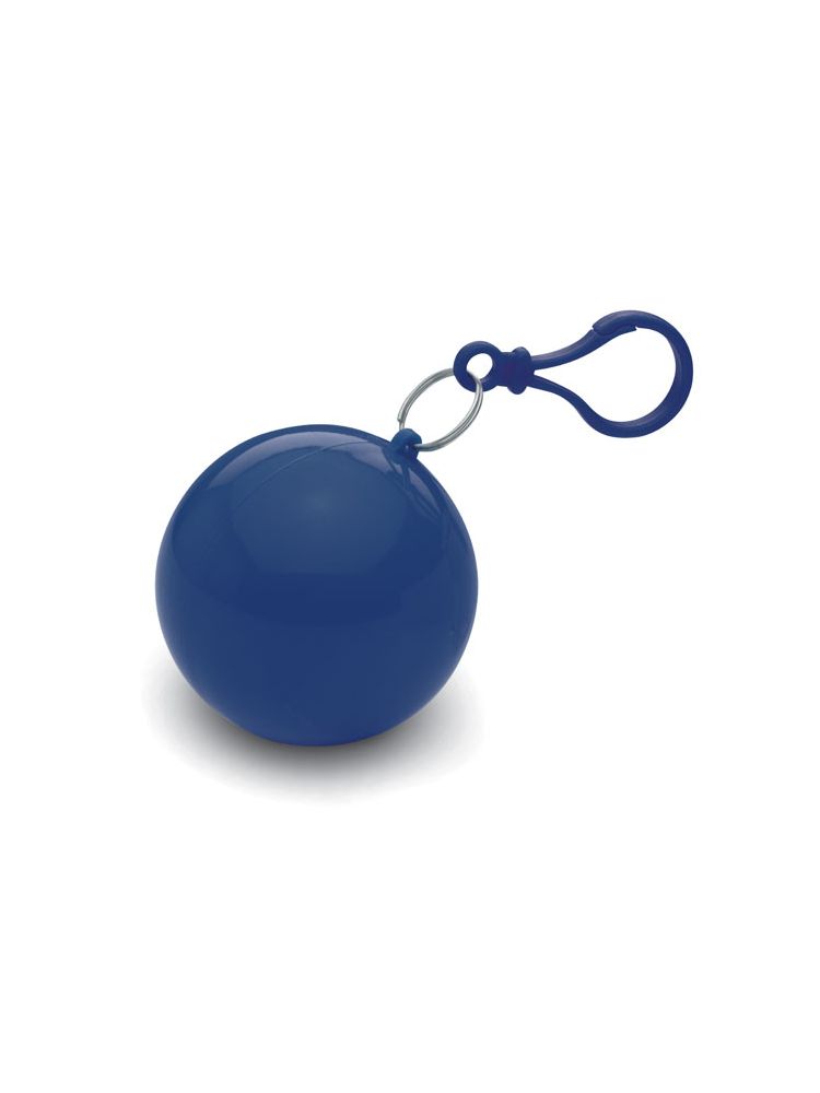 Przezroczyste ponczo przeciwdeszczowe z PE, zapakowane w okrągłe etui z AS z karabinkiem.