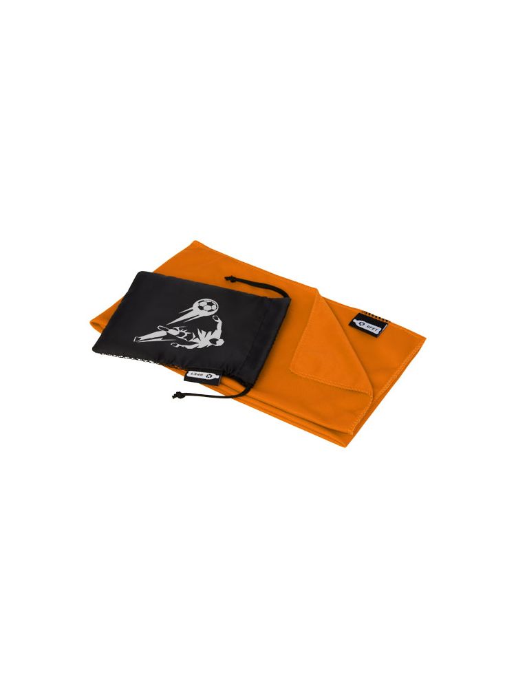 Szybko wchłaniający, szybkoschnący i nadający się do prania ręcznik chłodzący wykonany z PET z recyklingu. Dostarczany w małym pokrowcu z PET z recyklingu z zapięciem do łatwego przenoszenia. Dostępny w 5 żywych kolorach. Duży obszar dekoracji na pokrowcu (rozmiar 15 × 11,5 cm). Dekorację można też wykonać na samym ręczniku chłodzącym (rozmiar 80 × 30 cm).