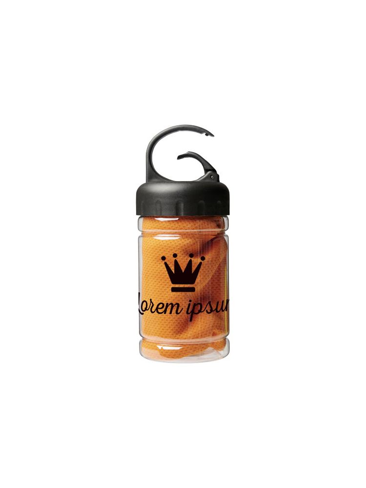 Ręcznik chłodzący Remy w pojemniku wykonany z wytrzymałego polierstu. Szybko wchłaniający, szybkoschnący i nadający się do prania ręcznik chłodzący do schładzania się podczas ćwiczeń lub aktywności na świeżym powietrzu. Dostarczany w pojemniku z uchwytem do przenoszenia z wbudowanym karabińczykiem ułatwiającym przenoszenie. Dostępny w 5 żywych kolorach. Duża przestrzeń na logo na pojemniku, dekoracja możliwa również na samym ręczniku chłodzącym. Wymiary: 30 × 80 cm. PET. 0,096.