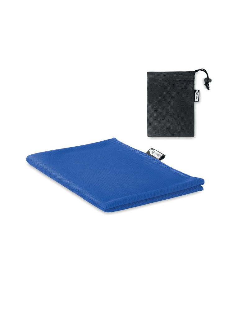 Ręcznik sportowy RPET o wysokiej chłonności wody, w zestawie worek z RPET.