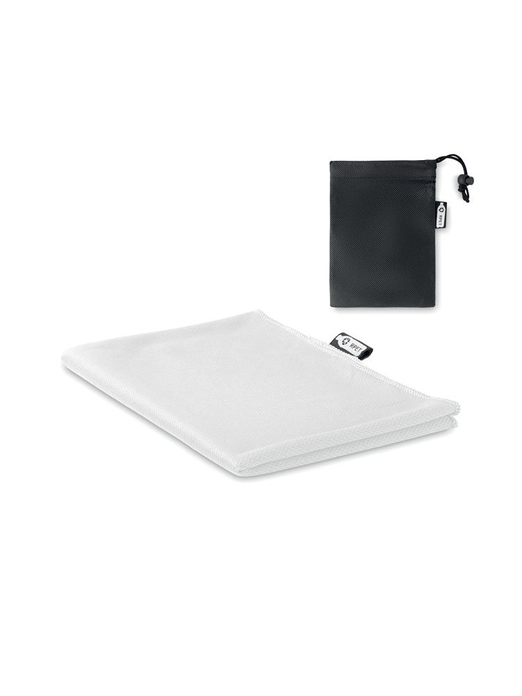 Ręcznik sportowy RPET o wysokiej chłonności wody, w zestawie worek z RPET.
