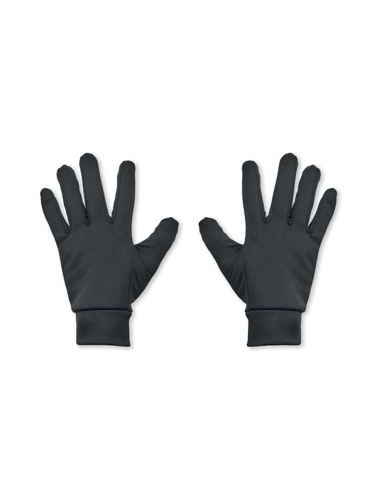 Dotykowe rękawice sportowe do smartfona z poliestru. Dwa palce z funkcją dotykową, antypoślizgowe kropeczki na dłoni i palcu z PVC.