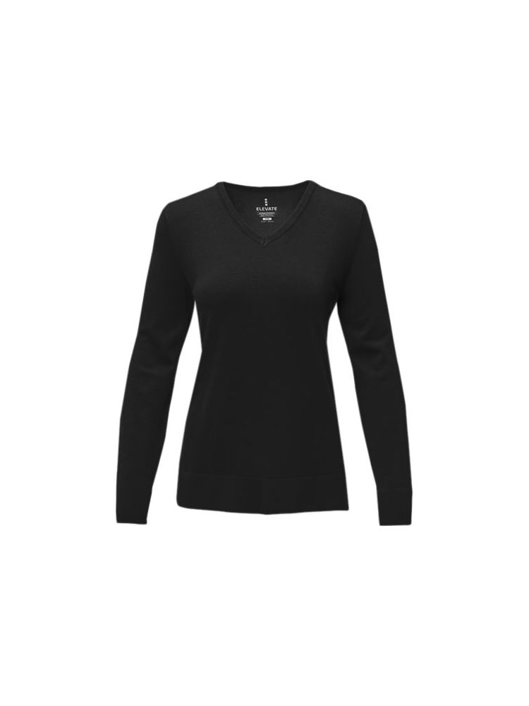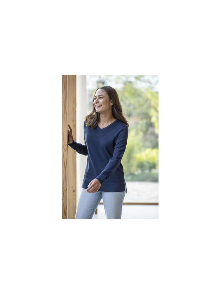 Damski sweter Stanton z dekoltem w serek to idealne połączenie wyrafinowania i klasycznego kroju z dekoltem w serek. Płaski ściągacz przy kołnierzu, mankietach i u dołu bluzy nie tylko podnosi jej walory estetyczne, ale także zapewnia długotrwały komfort noszenia. Wykonany z mieszanki wiskozy i nylonu w płaskiej dzianinie o grubości 12, ten sweter zapewnia idealną równowagę między stylem a funkcjonalnością. Ta cienka dzianina sprawia, że materiał jest gładszy i bardziej wyrafinowany, idealny zarówno na formalne okazje, jak i na co dzień. Sweter ma dopasowany krój zapewniający kobiecy wygląd.