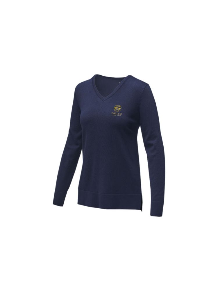 Damski sweter Stanton z dekoltem w serek to idealne połączenie wyrafinowania i klasycznego kroju z dekoltem w serek. Płaski ściągacz przy kołnierzu, mankietach i u dołu bluzy nie tylko podnosi jej walory estetyczne, ale także zapewnia długotrwały komfort noszenia. Wykonany z mieszanki wiskozy i nylonu w płaskiej dzianinie o grubości 12, ten sweter zapewnia idealną równowagę między stylem a funkcjonalnością. Ta cienka dzianina sprawia, że materiał jest gładszy i bardziej wyrafinowany, idealny zarówno na formalne okazje, jak i na co dzień. Sweter ma dopasowany krój zapewniający kobiecy wygląd.