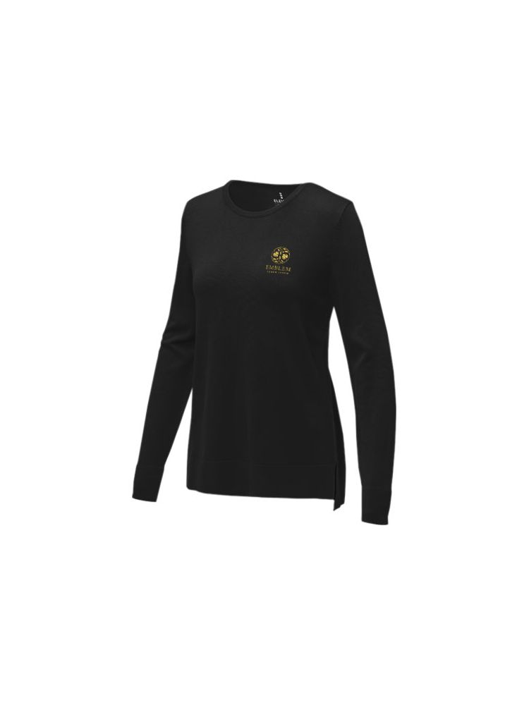 Damski sweter z okrągłym dekoltem Merrit to połączenie ponadczasowego stylu i wygody. Jego klasyczny okrągły dekolt jest uzupełniony płaskimi dzianinowymi ściągaczami na kołnierzu, mankietach i u dołu, zapewniając wyrafinowany urok odpowiedni na każdą okazję. Wykonany z mieszanki wiskozy i nylonu o grubości 12 g, oferuje połączenie miękkości, trwałości i lekkości. Podnieś swoją garderobę dzięki wszechstronnemu swetrowi Merrit, który uosabia elegancję i jakość. Ten sweter ma dopasowany krój zapewniający kobiecy wygląd.