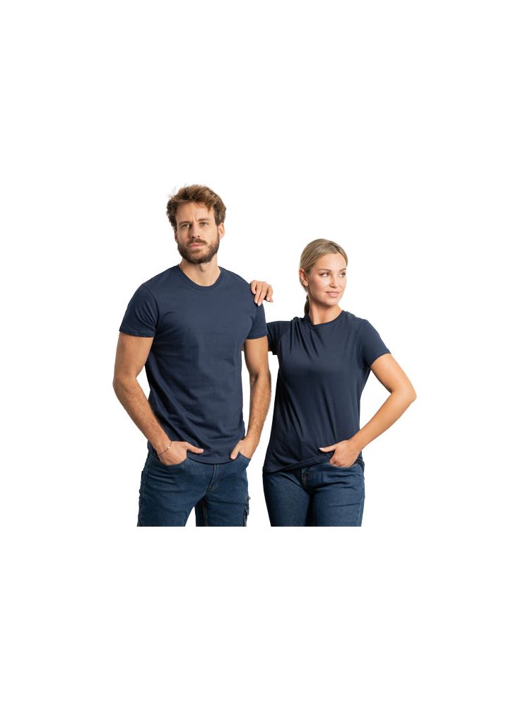 Koszulka z materiału rurkowego z krótkim rękawem. Prążkowany dekolt 1×1 z wewnętrznymi krytymi szwami.
